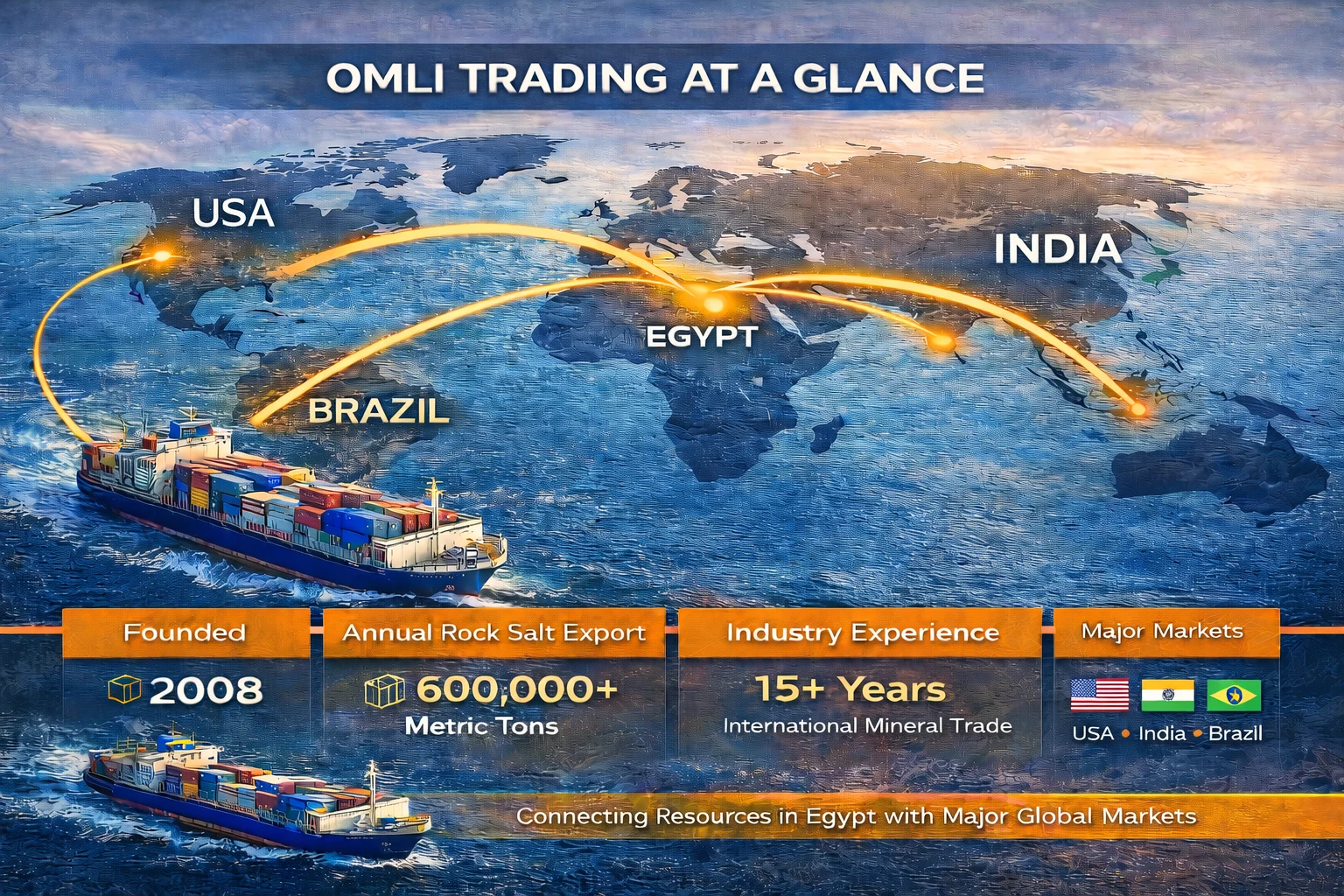 Through its upstream operations in Siwa, Egypt, the company exports more than 600,000 metric tons of rock salt annually, supplying major industrial, infrastructure, and agricultural markets across the United States, India, and Brazil.